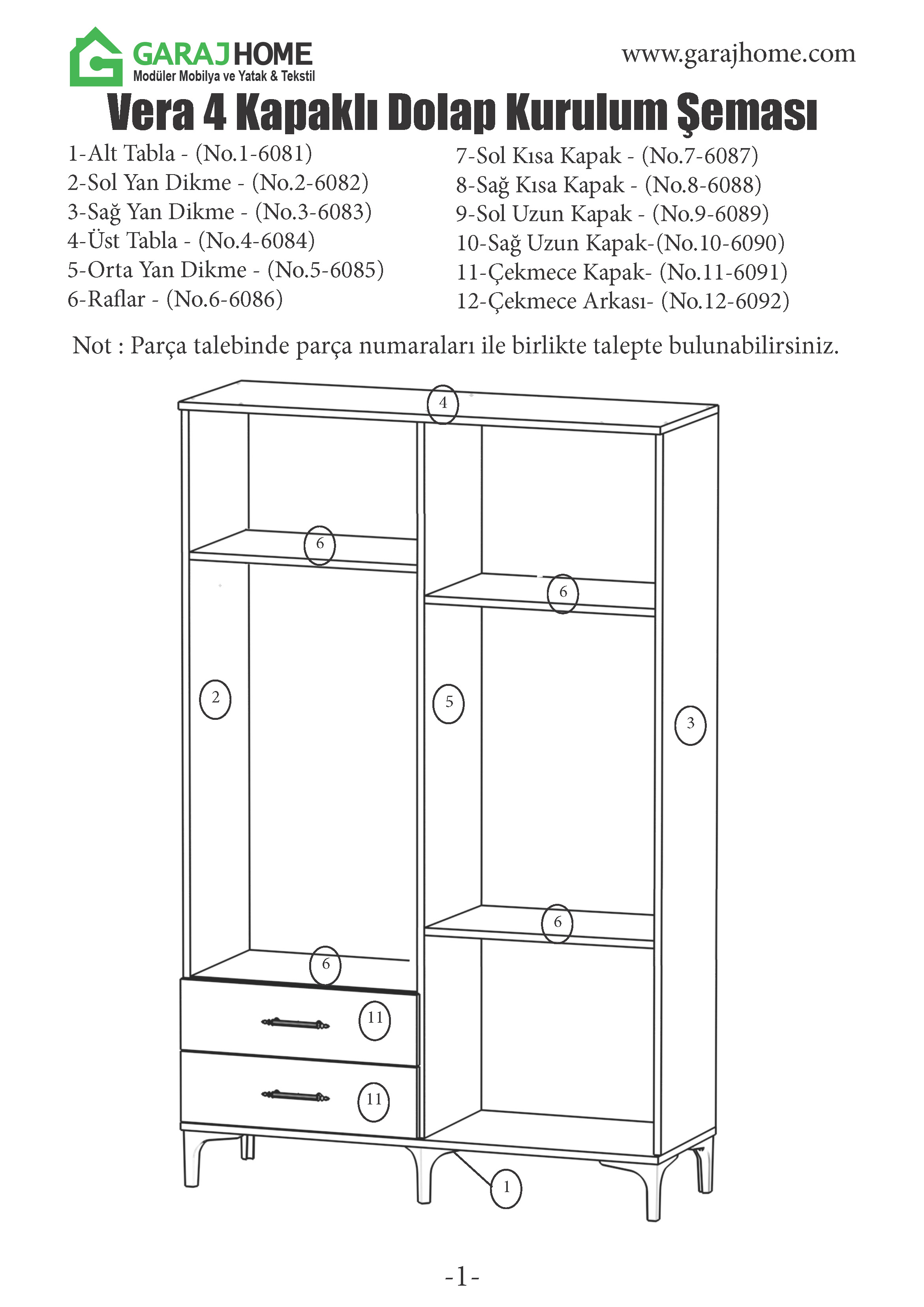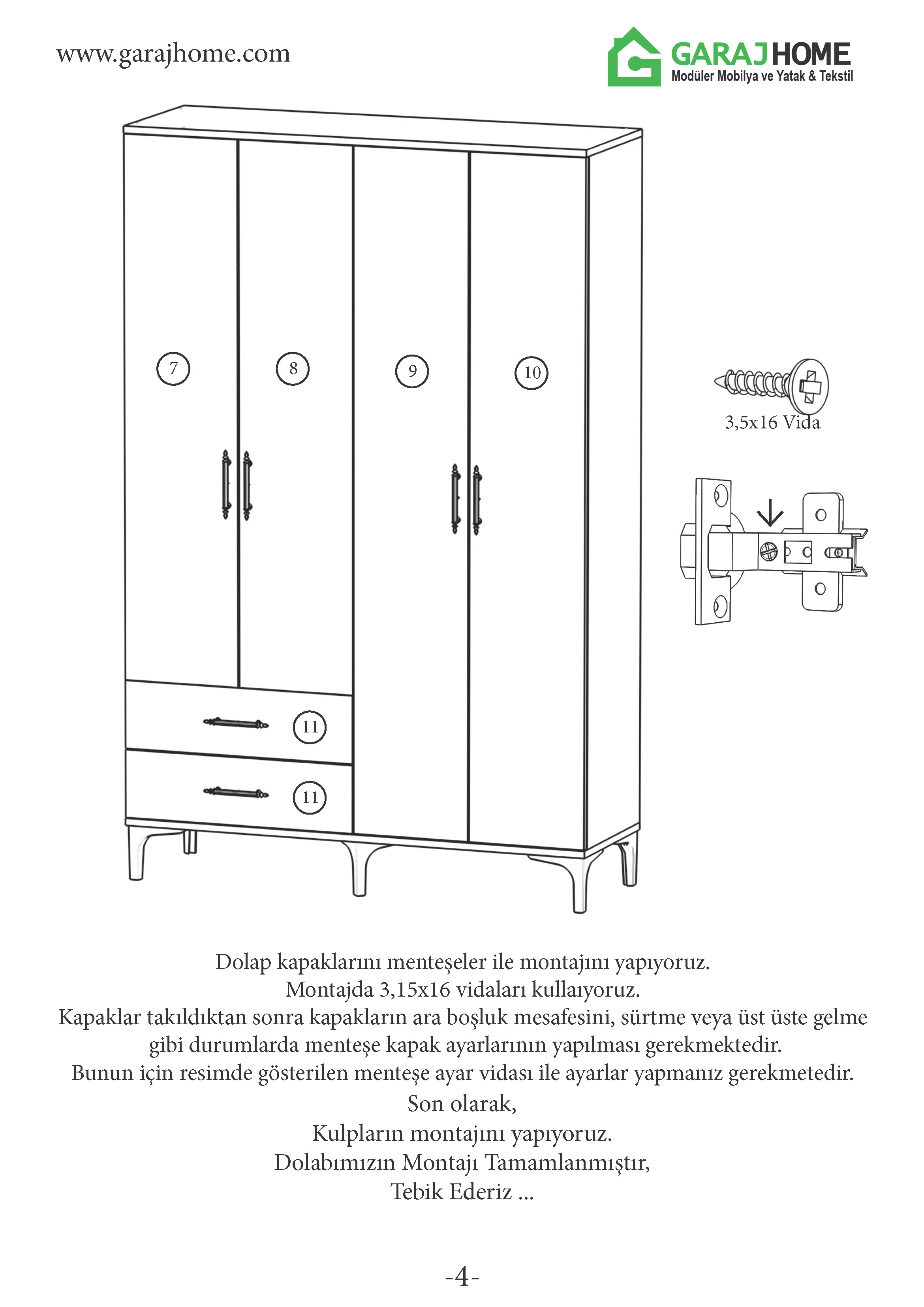 Vera 4 Kapakli Dolap Kurulum Talimatı